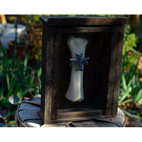 J. Larry Nance: 3369─ Reliquary: 5x5x 8.25, Bone, mixed media,;